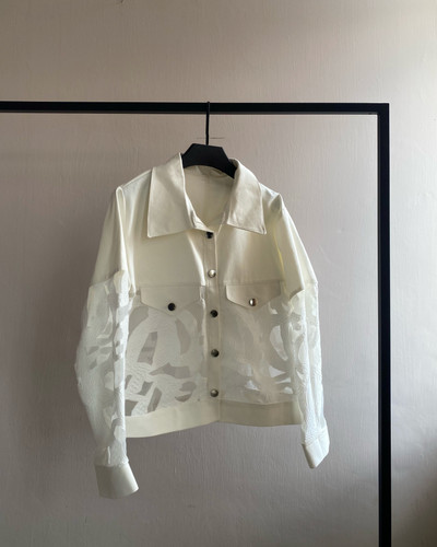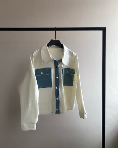 کراپ کت سفید مزون دوز با دکمه استیل طلاییناموجود