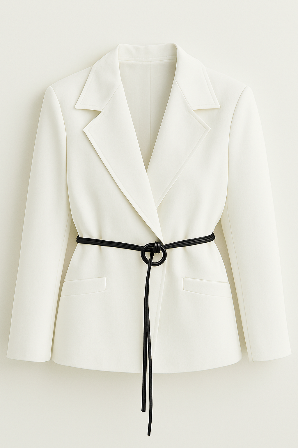 و کت سفید و مشکی با کمربند چرم مشکی ارسال میشوند