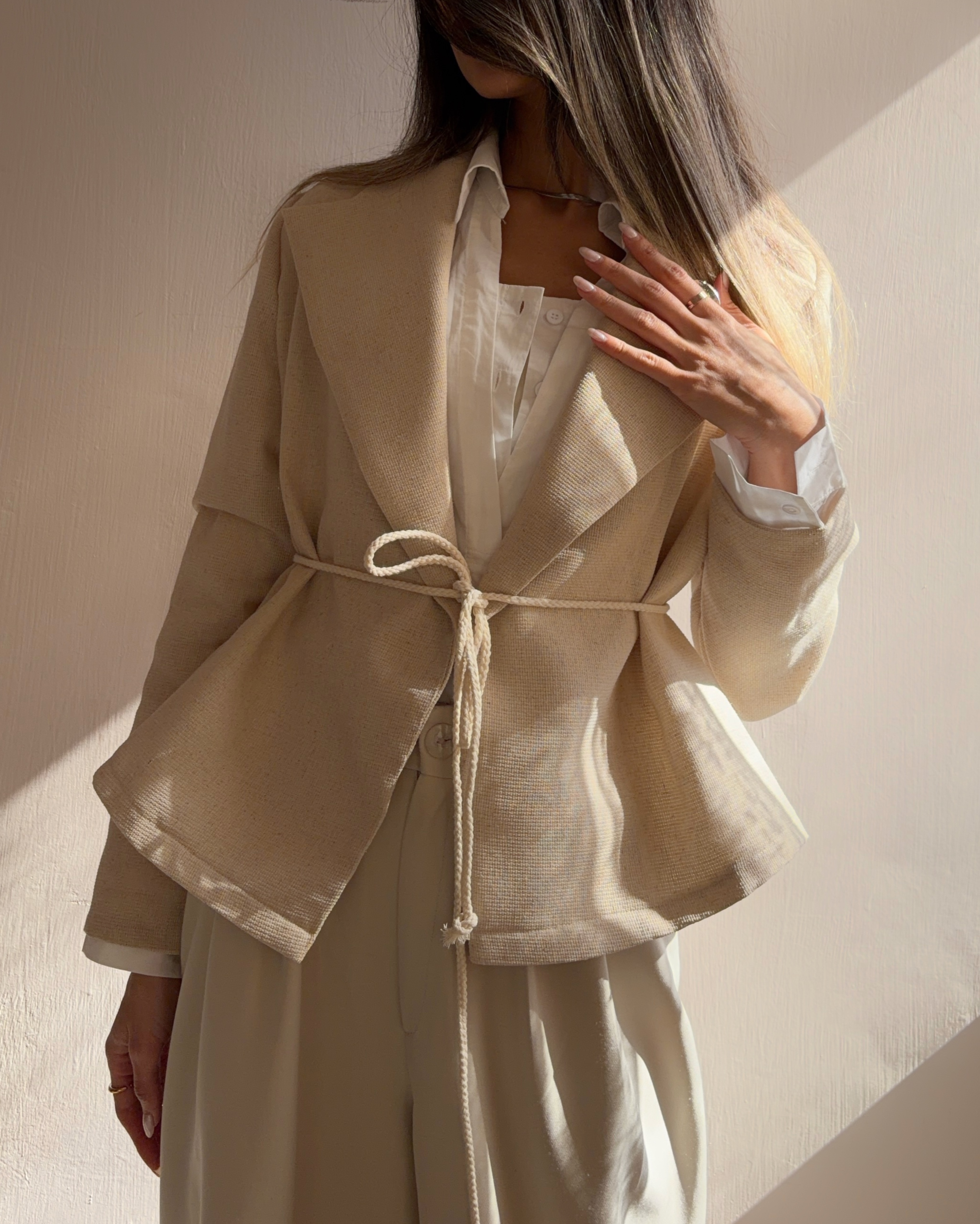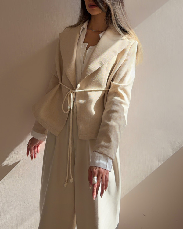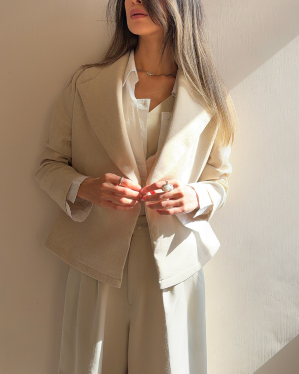 کت آوینا با الهام از معنای «پاک و طبیعی»، یک انتخاب مینیمال، شیک و کاملاً متفاوت برای استایلهای روزمره و رسمی است. این مدل با پارچه لینن نچرال کنفی دوخته شده؛ پارچهای با بافت طبیعی، سبک و تنفسپذیر که حس آرامش و اصالت را در استایل شما زنده میکند.