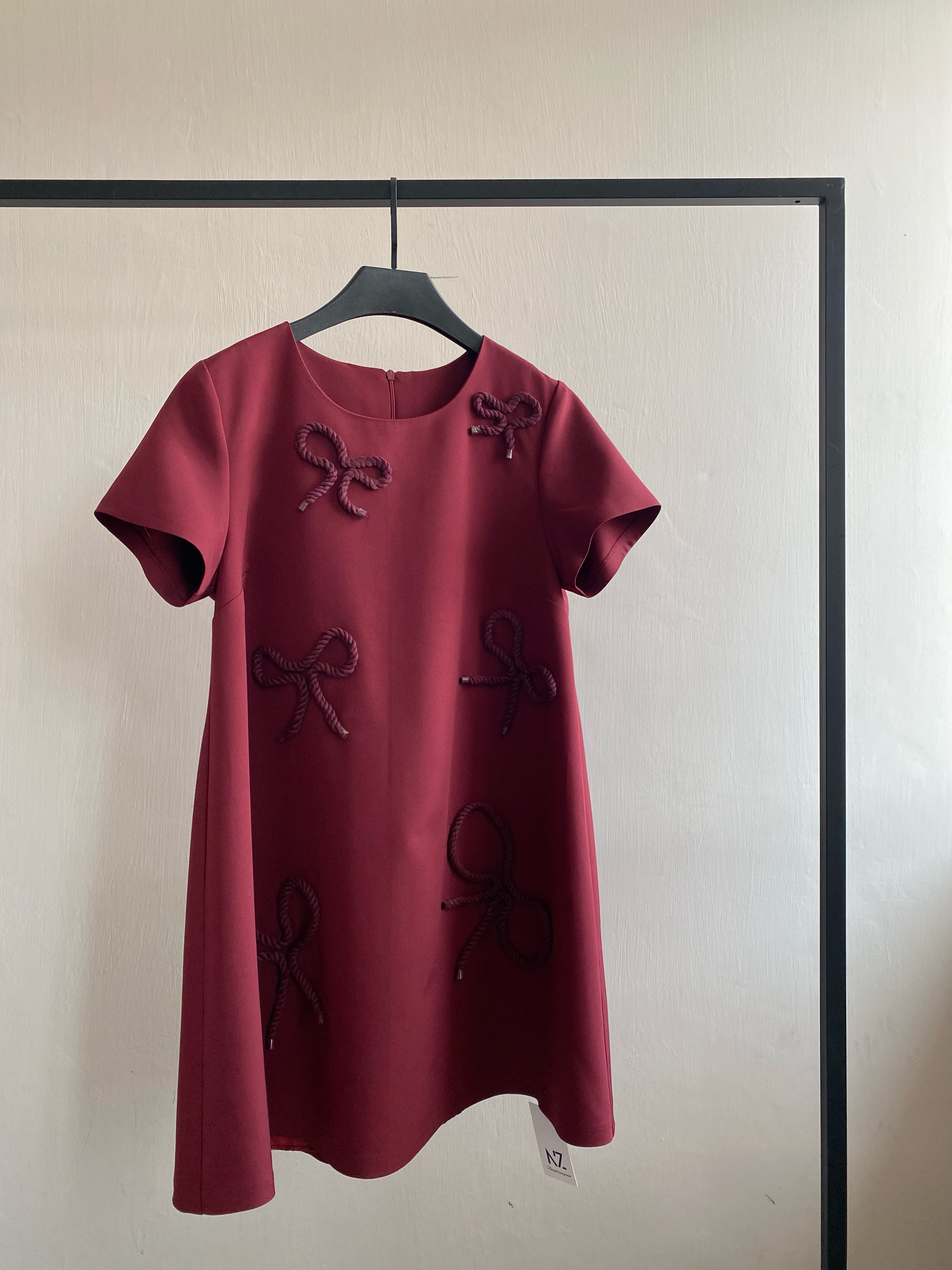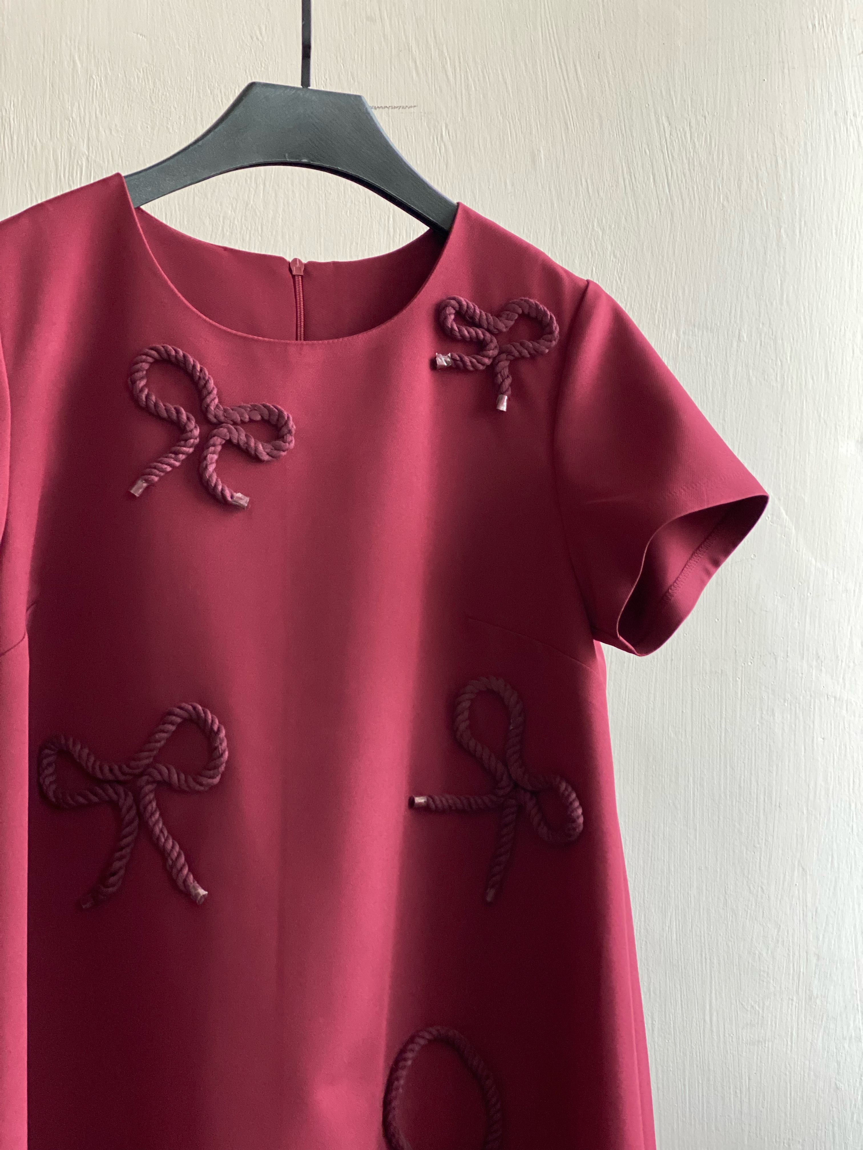 پیراهن کرپ زرشکی با طرح برجسته مناسب مهمانی ها و دور همی ها پشت زیپ کیفیت عالی قد حدود ۸۰ فری سایز از ۳۶ تا ۴۰ تک رنگ