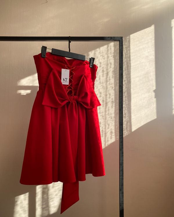 پیراهن دکلته قرمز طراحی و تولید اختصاصی به تعداد محدود