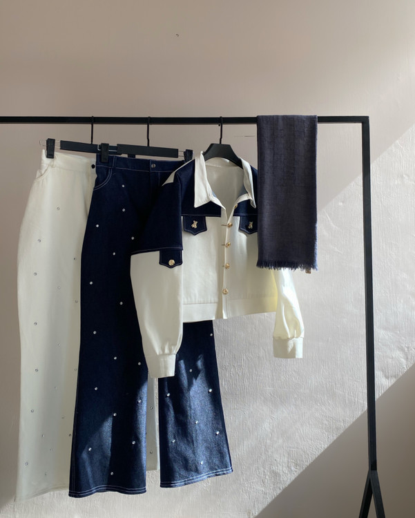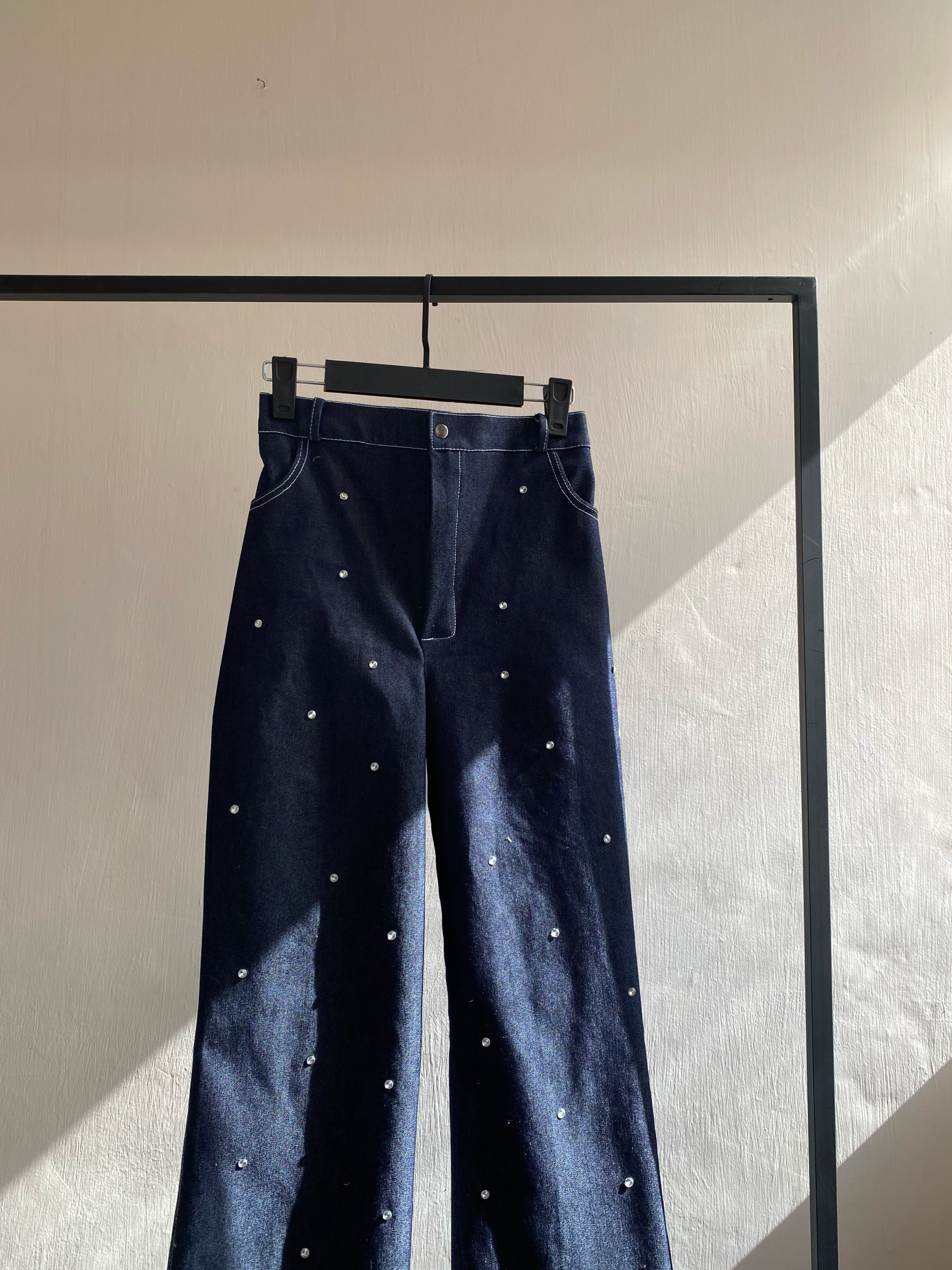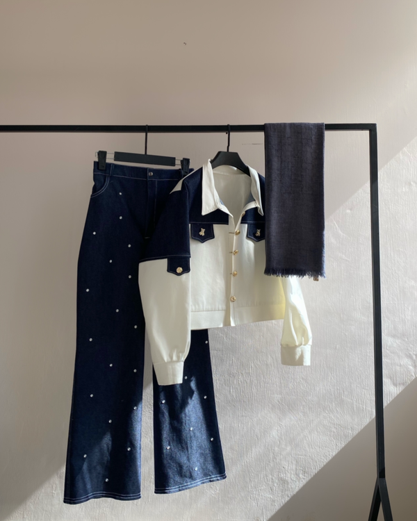 شلوار جین نگین دار نیم بگم