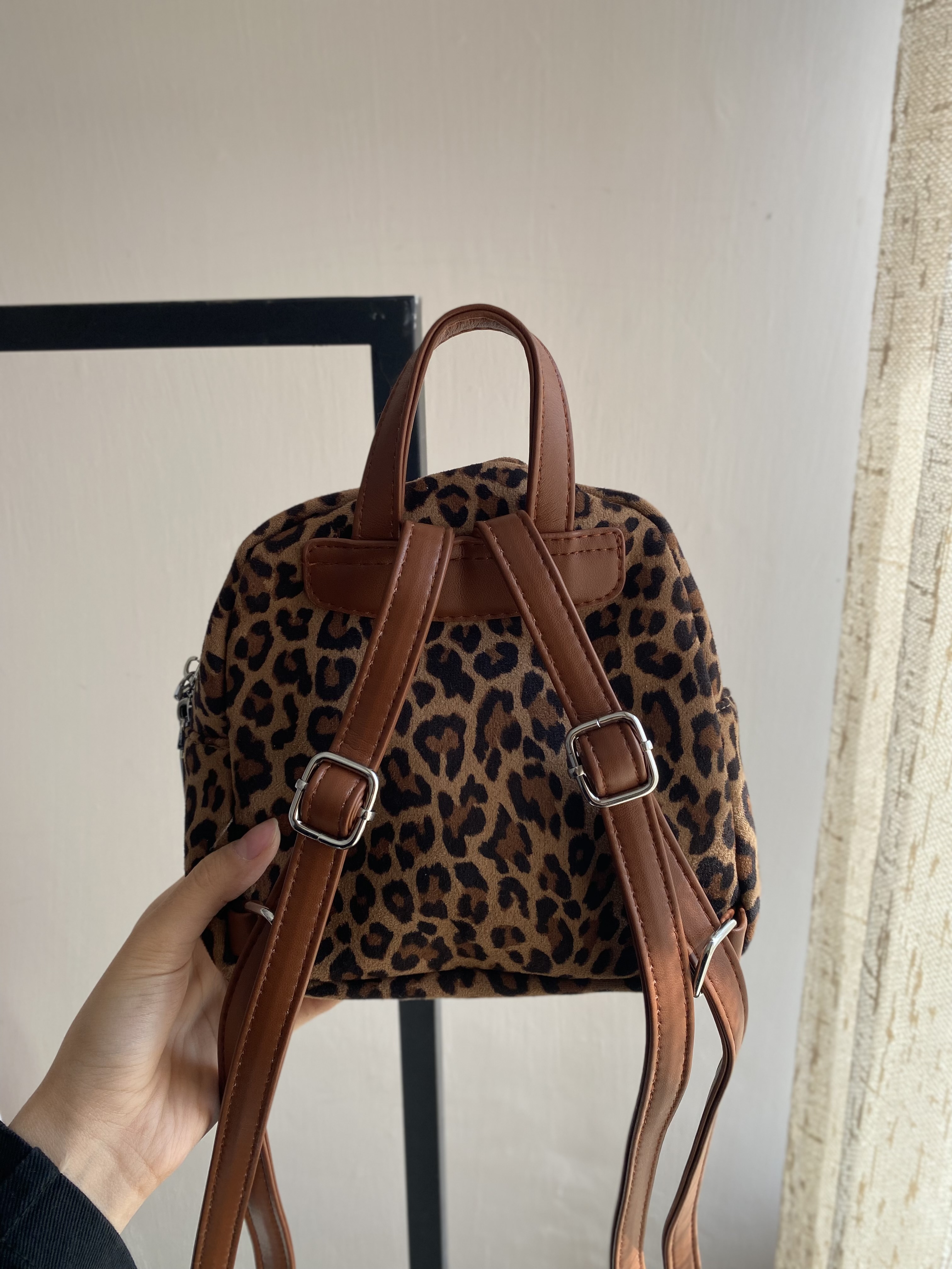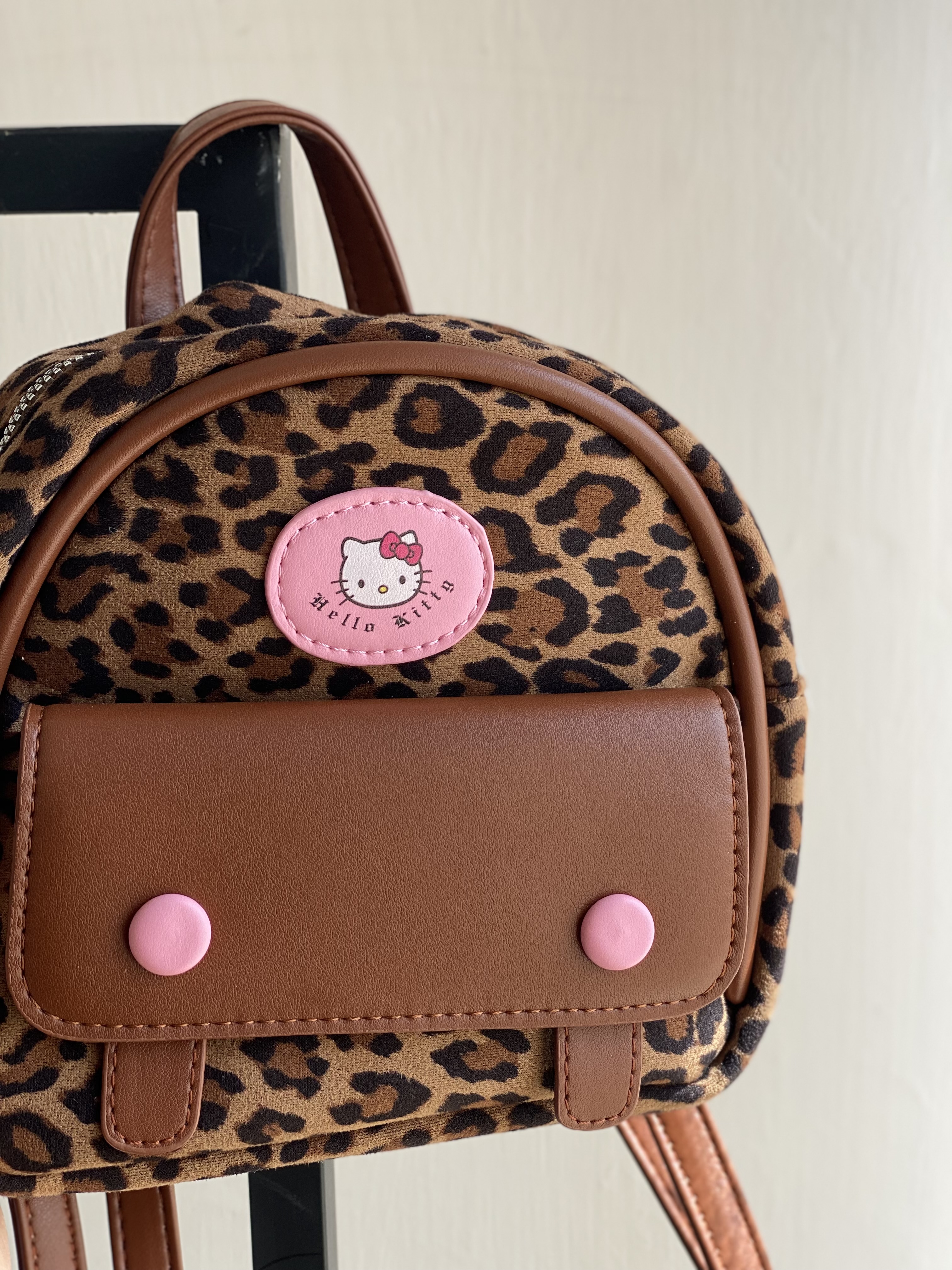 کوله پشتی وارداتی کیتی طرح پلنگی جنس: چرم و مخمل ابعاد: قد عمودی ۱۷ سانتی متر طول افقی ۲۰ سانتی متر عرض (پهنا) ۷ سانتی متر