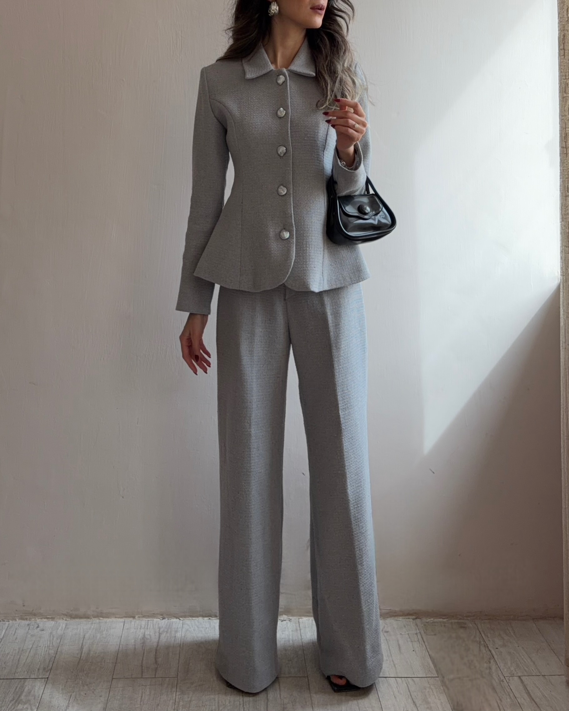 بافت پارچه ی شنل بسیار خاص و منحصر به فرد است، تار و پود برجسته دارد و برش های این شلوار باعث میشود شما بلند تر و کمر باریک تر به نظر برسید