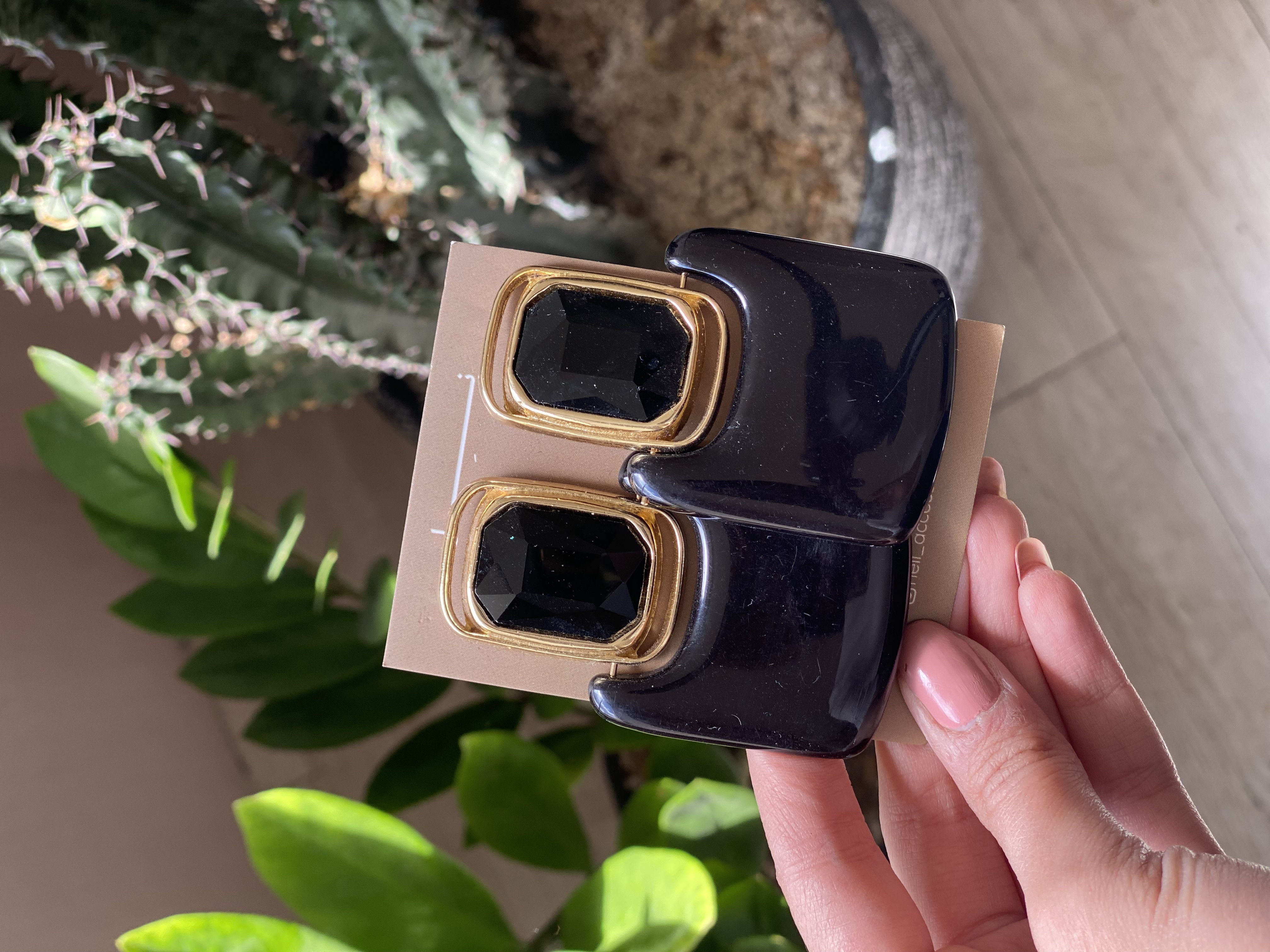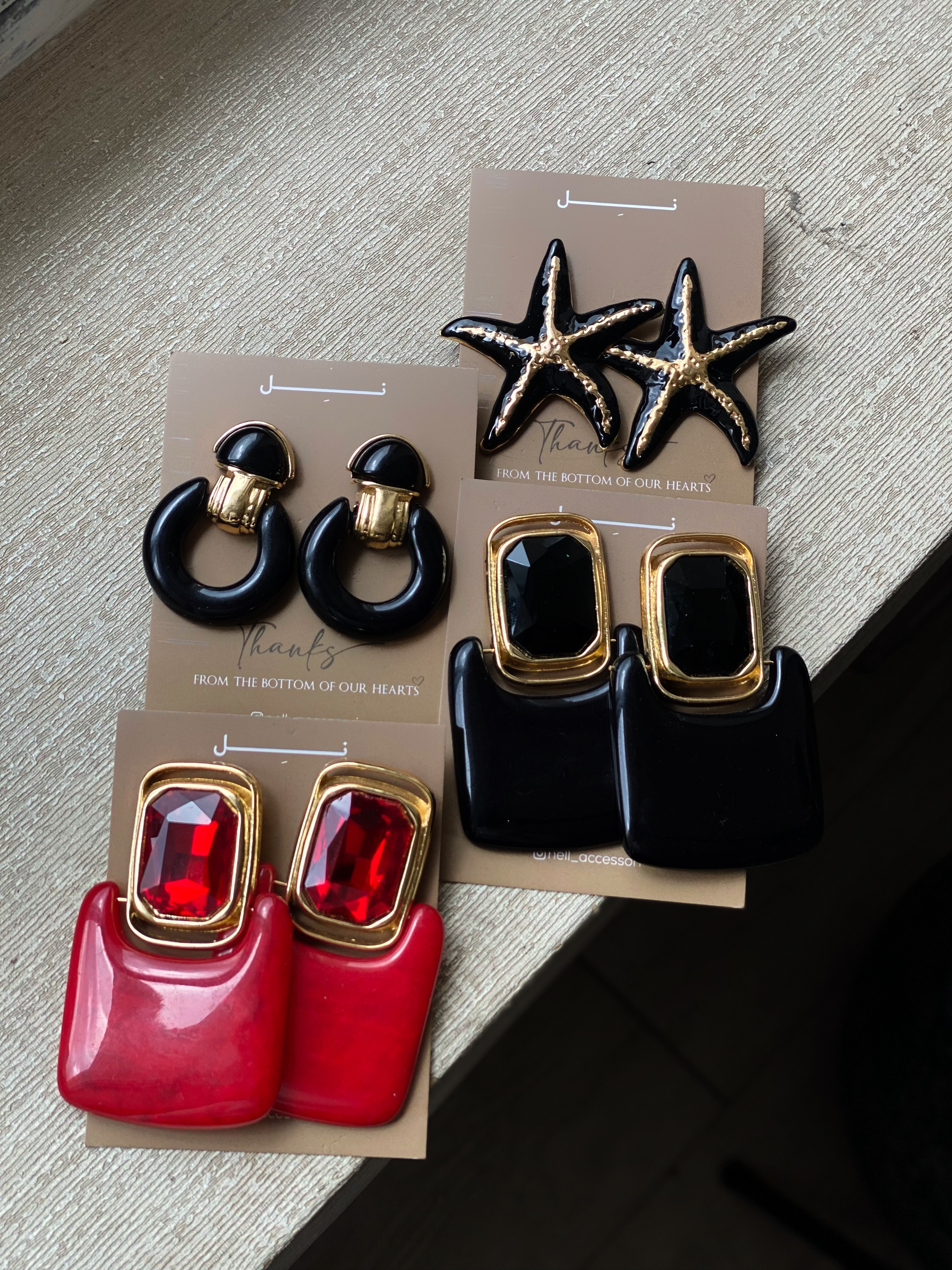 گوشواره مجلسی نگین دار سایز بزرگ مشکی و قرمز