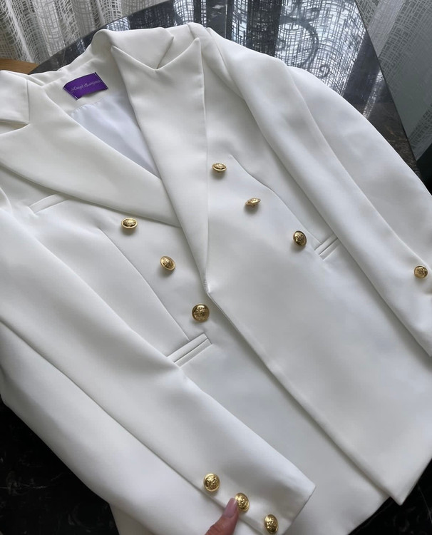 این کت مزونی یکی از شیکترین و خاصترین مدلهایی است که برای عقد محضری، مراسم عروس، فرمال و استایلهای رسمی انتخاب میشود. همین مدل را فاطمه بیگی – یکی از بلاگرهای معروف – در مراسم عقدش پوشیده و بههمین دلیل بهشدت ترند شده است.