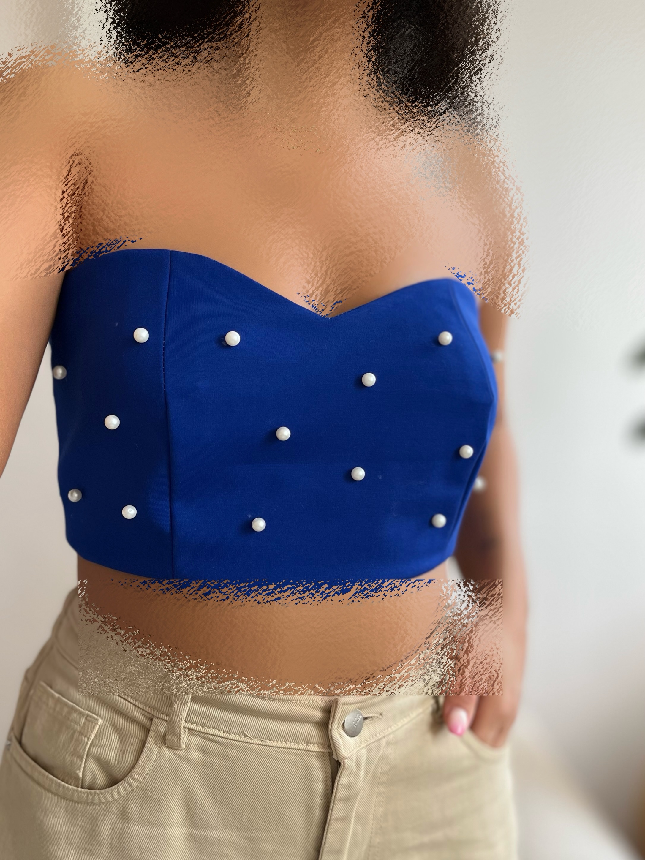 کراپ کتان رنگ آبی