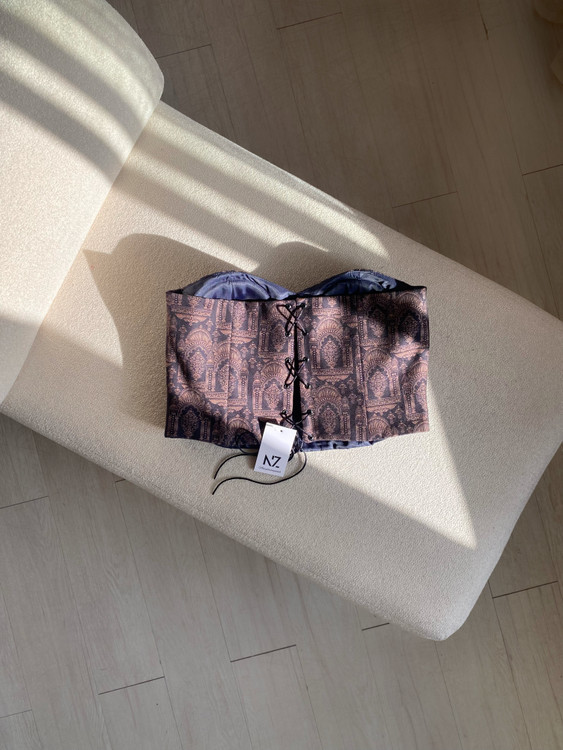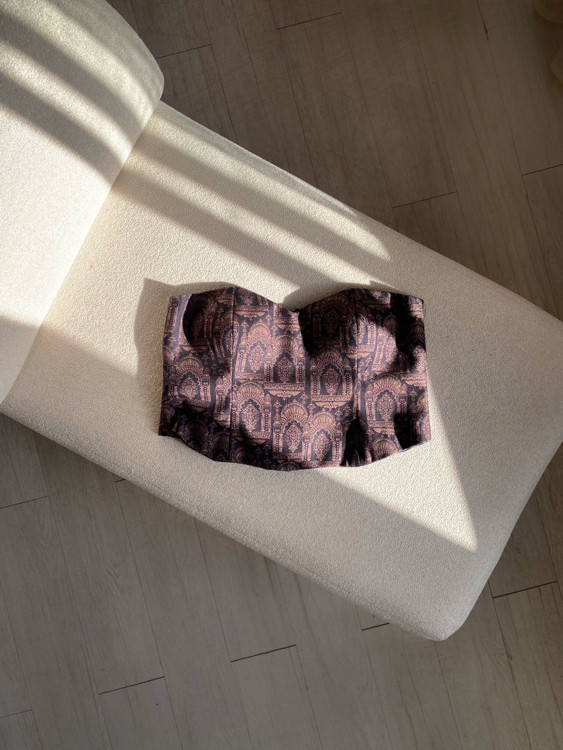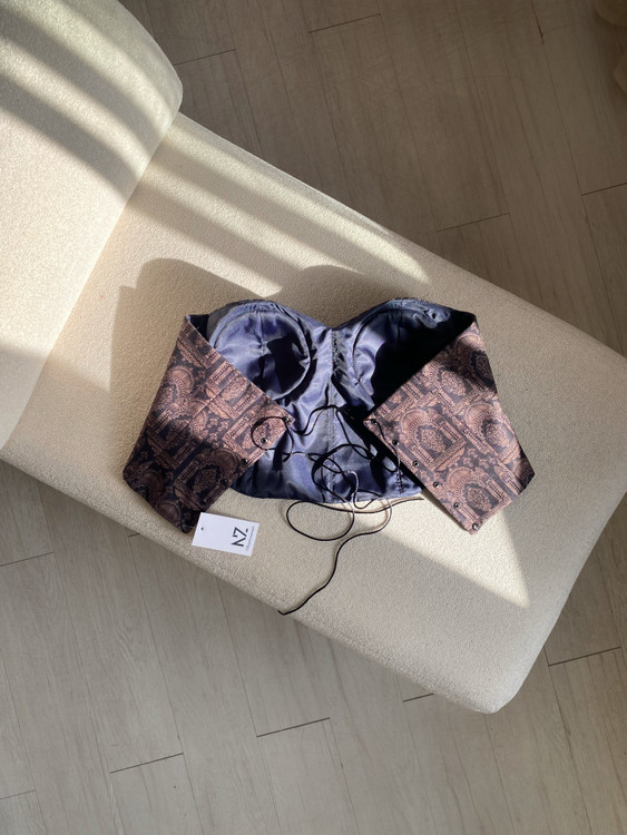 تاپلکس تمام فنر جنس: مخمل طرحدار ✔️تمام لایی استردار ✔️دارای کاپ و فنر ✔️پشت بندی با قابلیت تغییر سایز از ۴۰ تا ۴۴ ✔️قد حدود ۳۰